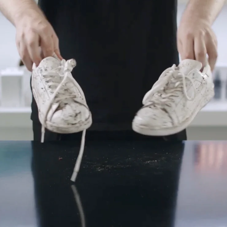 Wykonaj punktowe czyszczenie za pomocą ściereczki Sneaker Wipe, aby usunąć wszelkie zarysowania i plamy na poziomie powierzchni, przygotowując się do głębokiego czyszczenia.